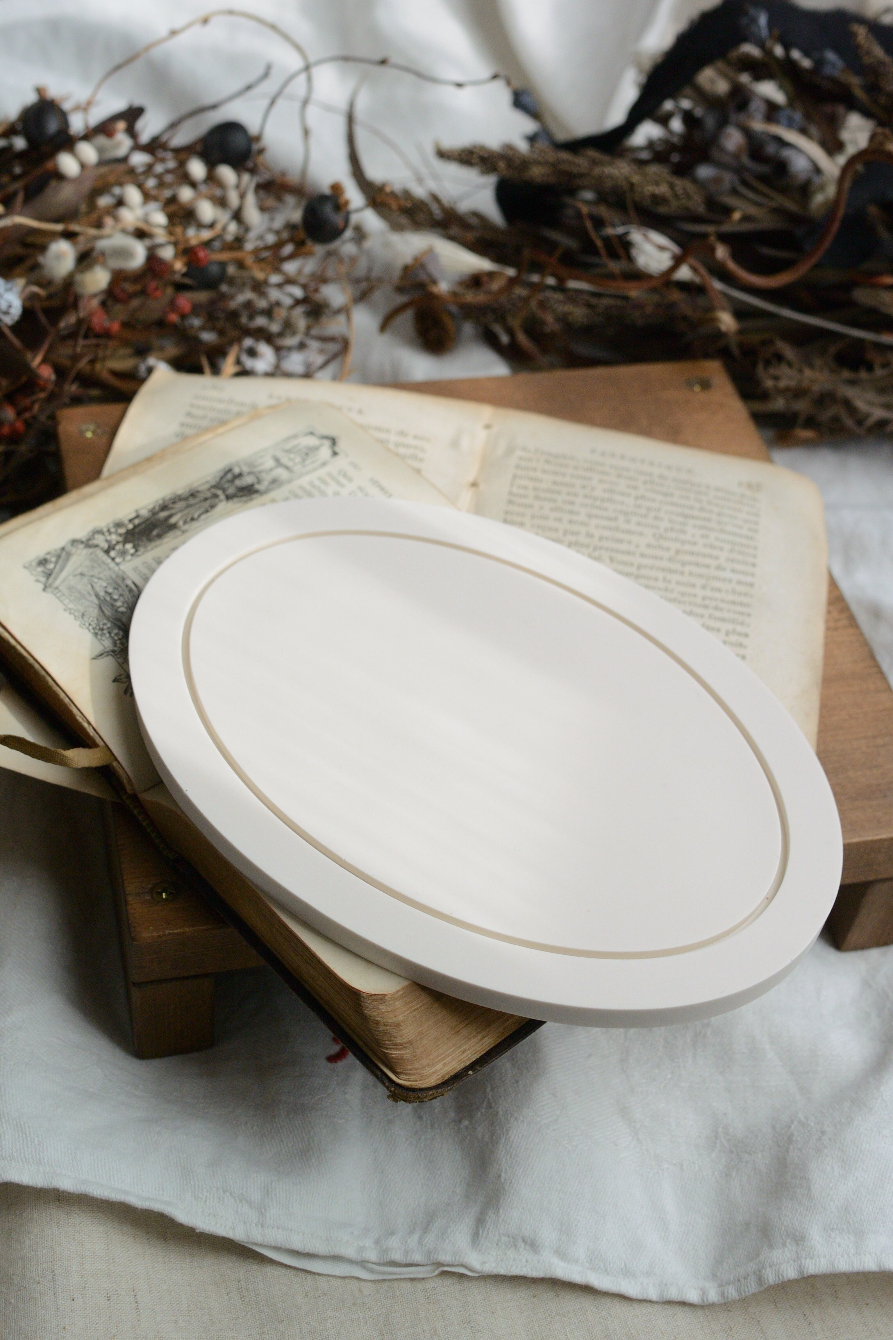 embossed oval plate