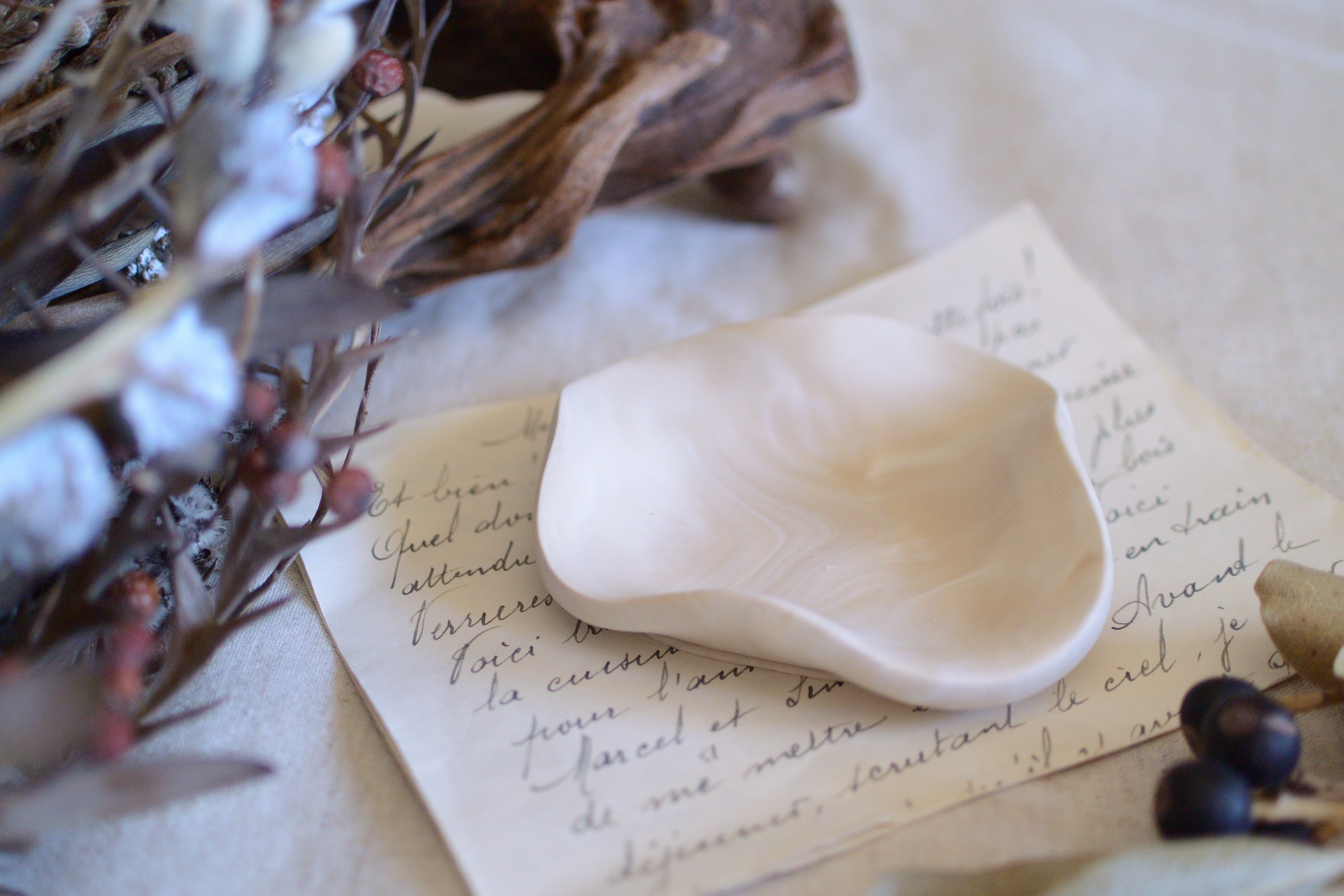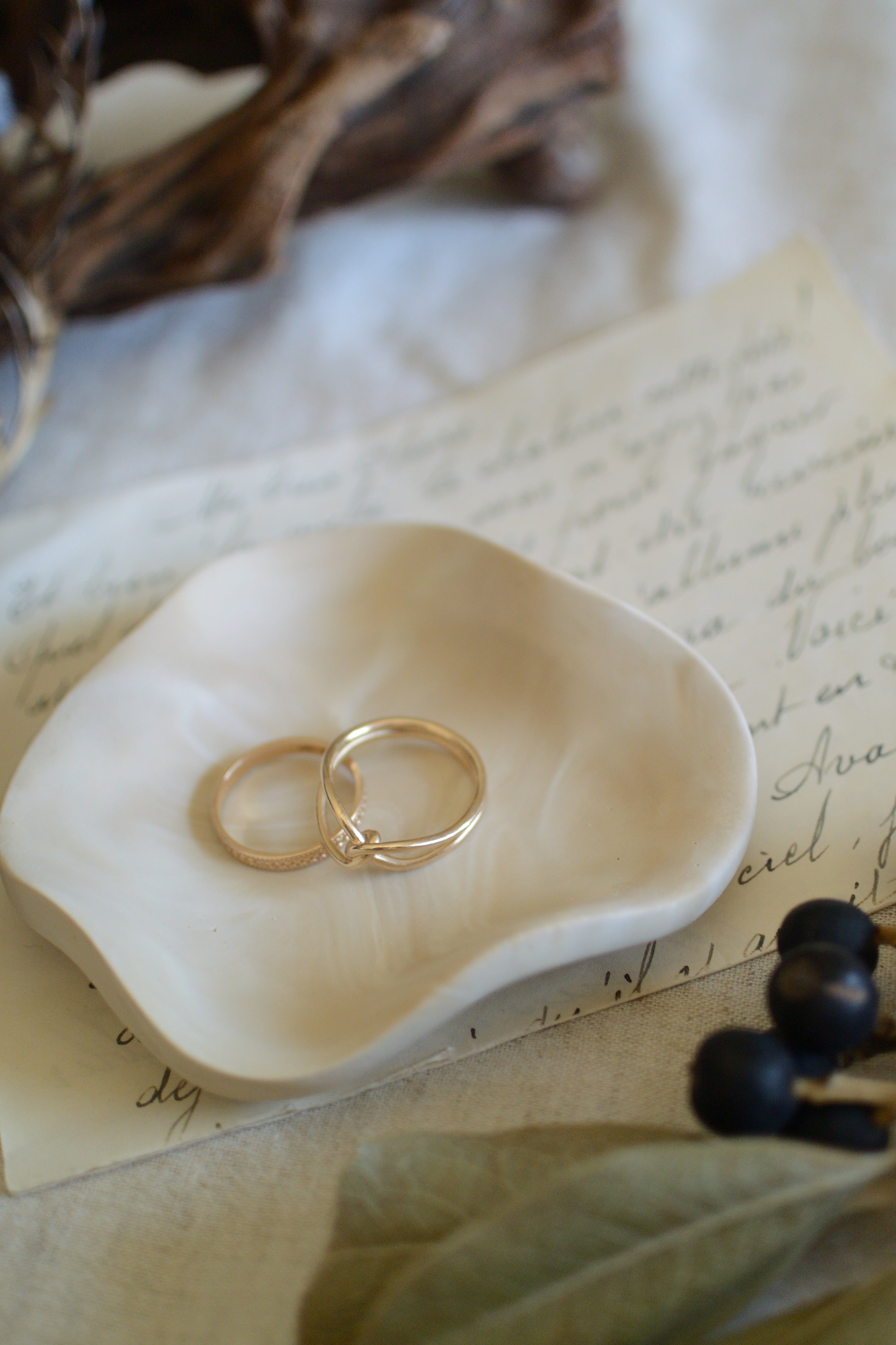 うねうねとしたリムが可憐なミニトレイです。