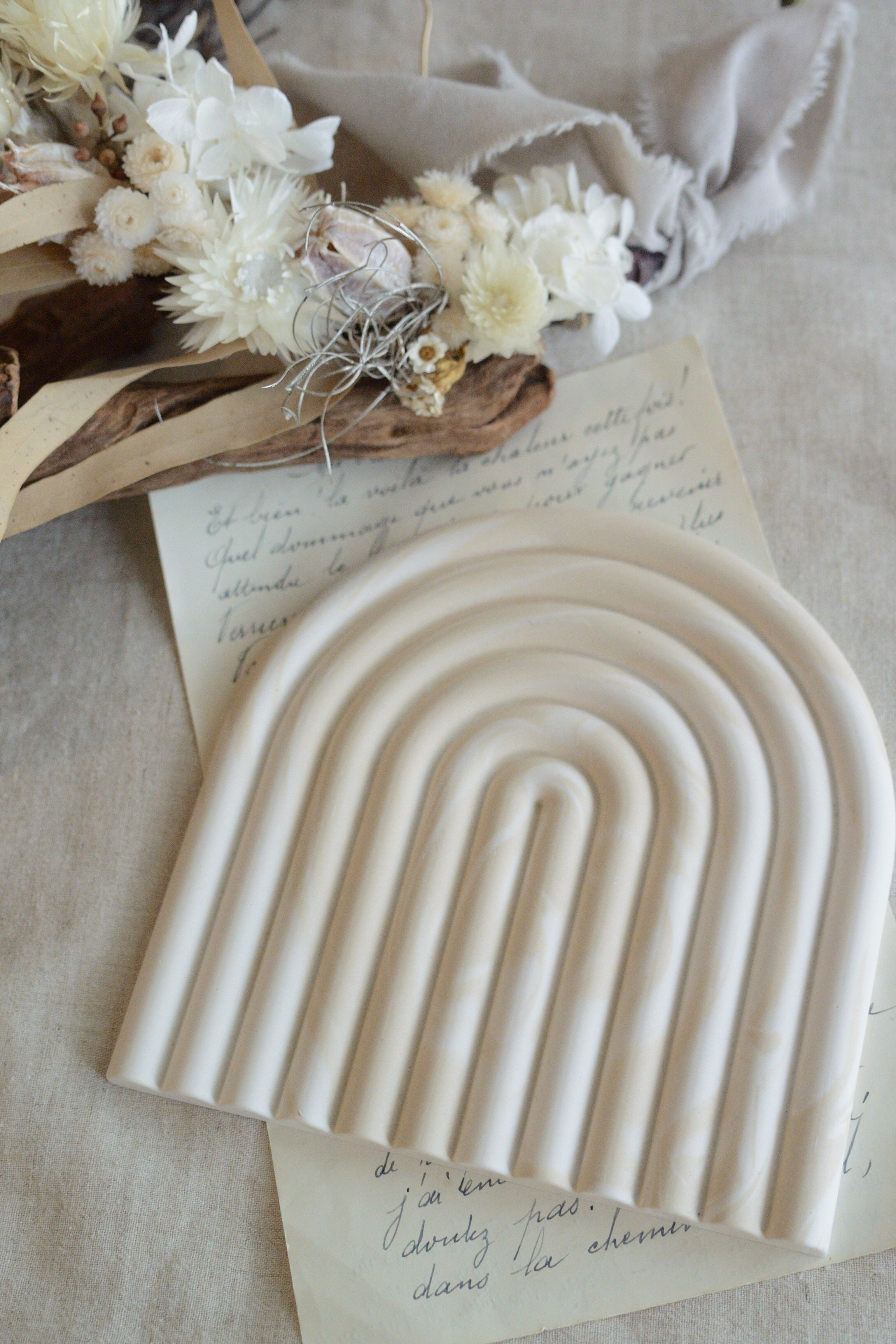 ベージュマーブルのアーチ型トレイです。