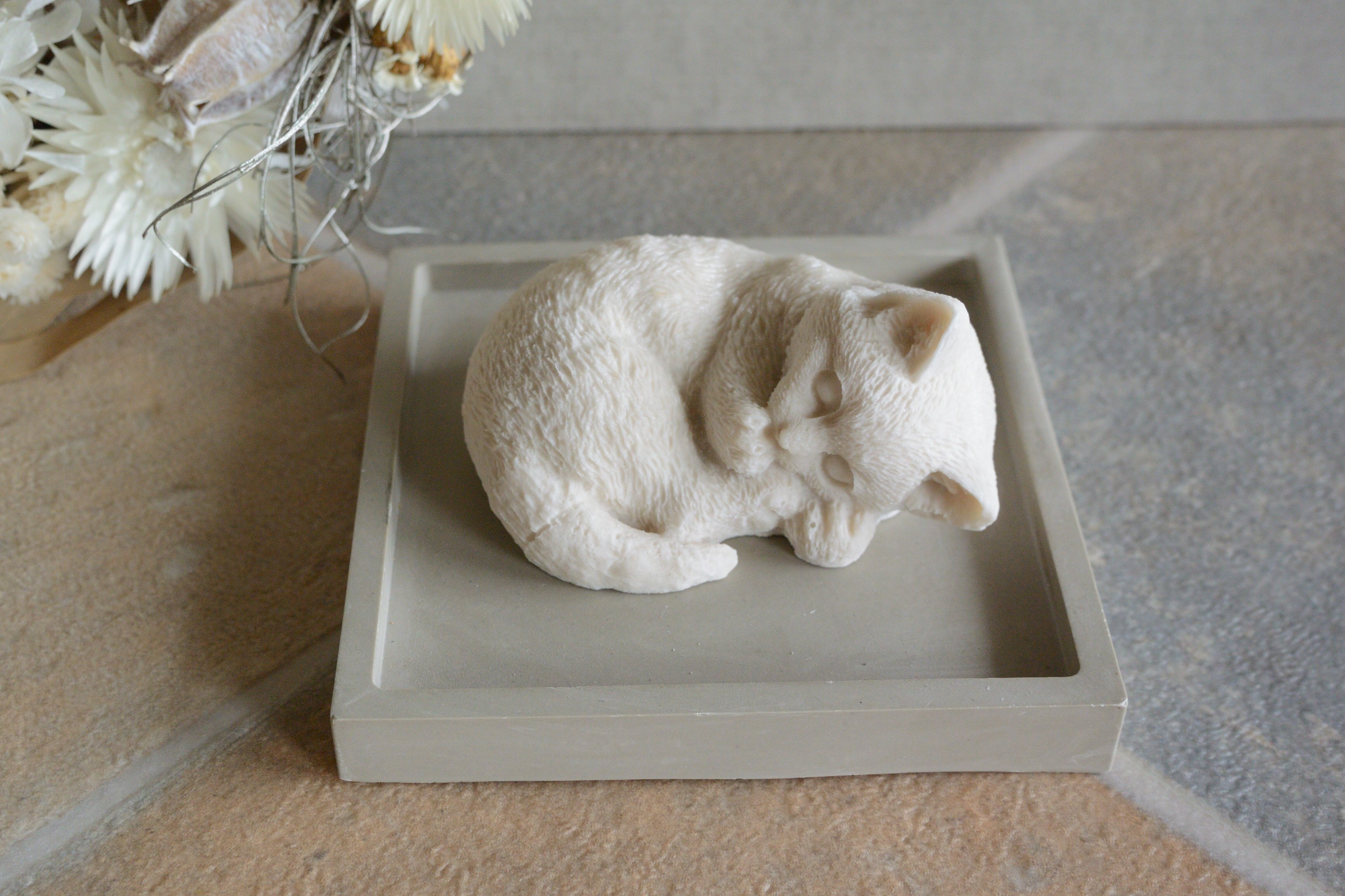 寝ころんだねこデザインのオブジェです。