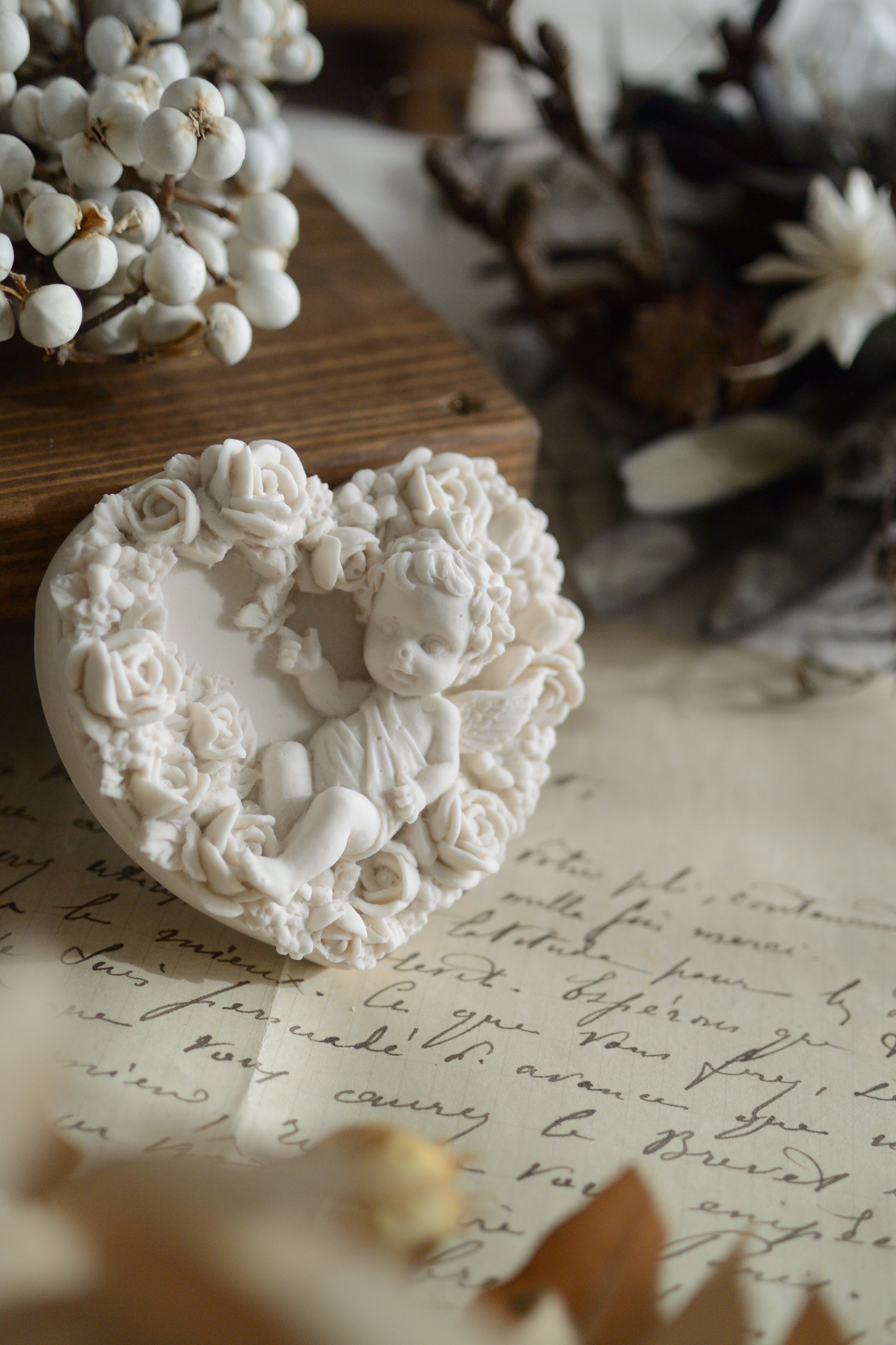 ハートシェイプの天使デザインオブジェです。